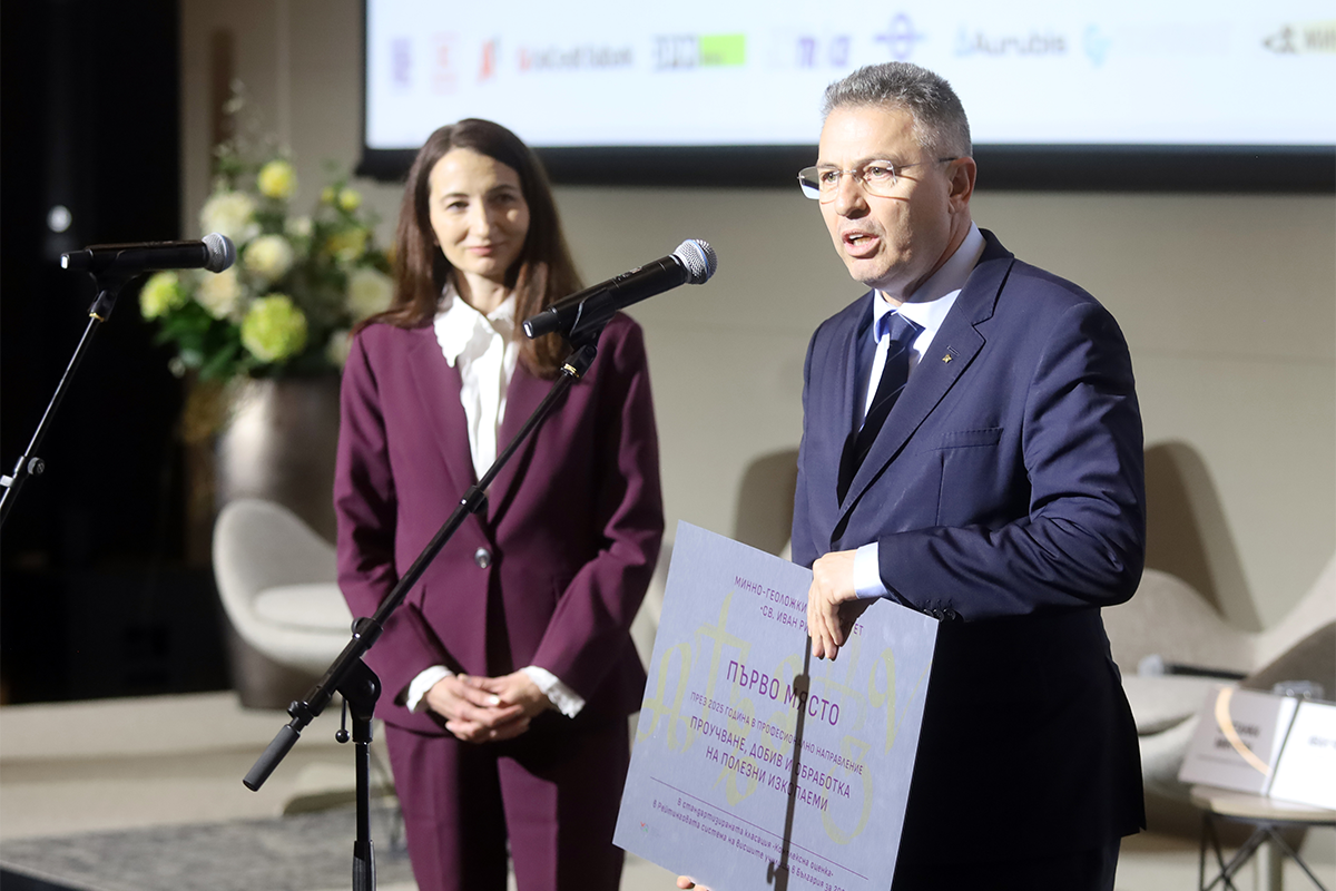Престижната награда бе връчена на ректора на университета, проф. д-р инж. Ивайло Копрев, от Румяна Иванова, изпълнителен директор на „Геотрейдинг“ АД. Компанията участва в събитието като традиционен партньор и последователно подкрепя инициативи, насочени към развитието на висшето образование и професионалната подготовка на студентите в минерално-суровинния сектор.